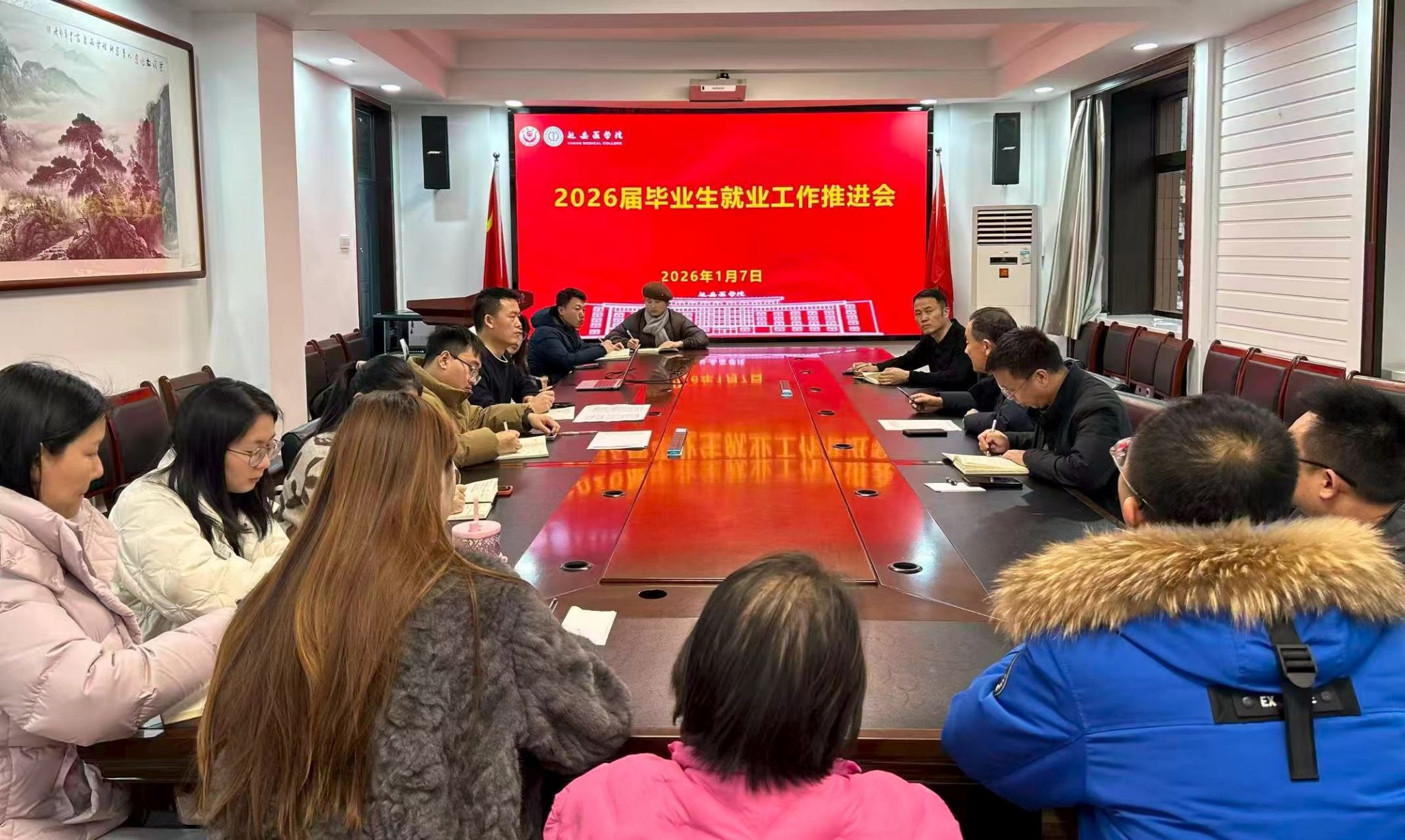 于1月7日在逸夫楼304会议室组织召开了2026届毕业生就业工作推进会。学院党委书记葛彬,党委副书记罗世乾、高曙光以及全体学工干部参会,会议由党委副书记罗世乾主持。